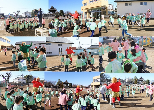 男の子と女の子に分かれて、鬼役と豆をまく役にチャレンジ...